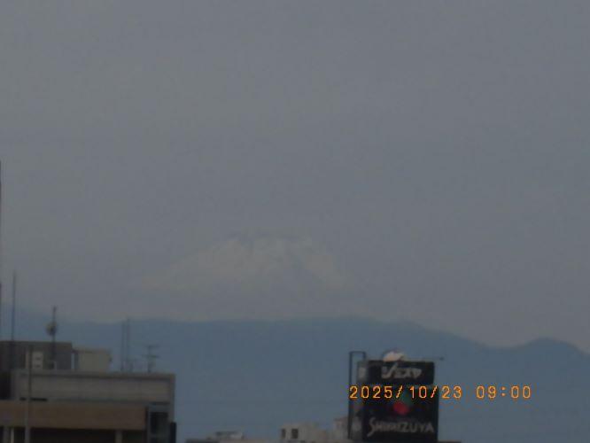 10月23日9時00分、初冠雪の富士山。甲府地方気象台発表と同日なのは3年ぶり?(10月に丹沢に雪が積もった2022年以来かな?)