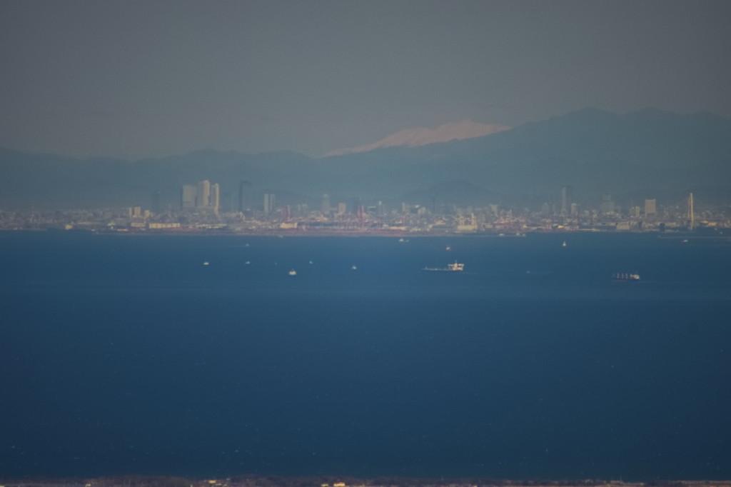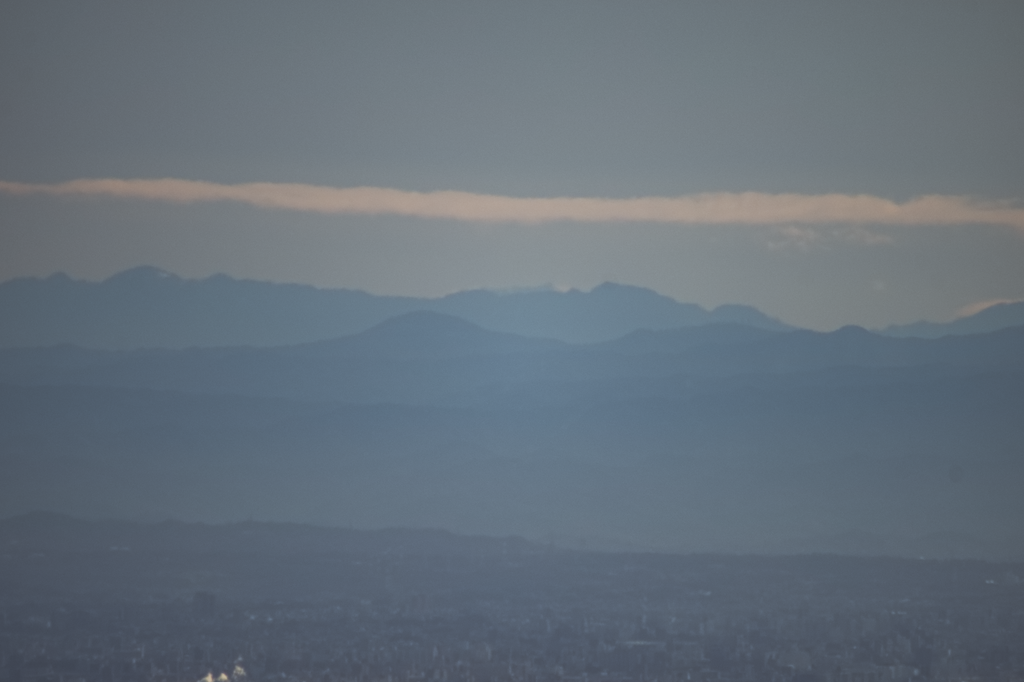 ↑この日の最遠望の薬師岳(250km)と名古屋ビル群