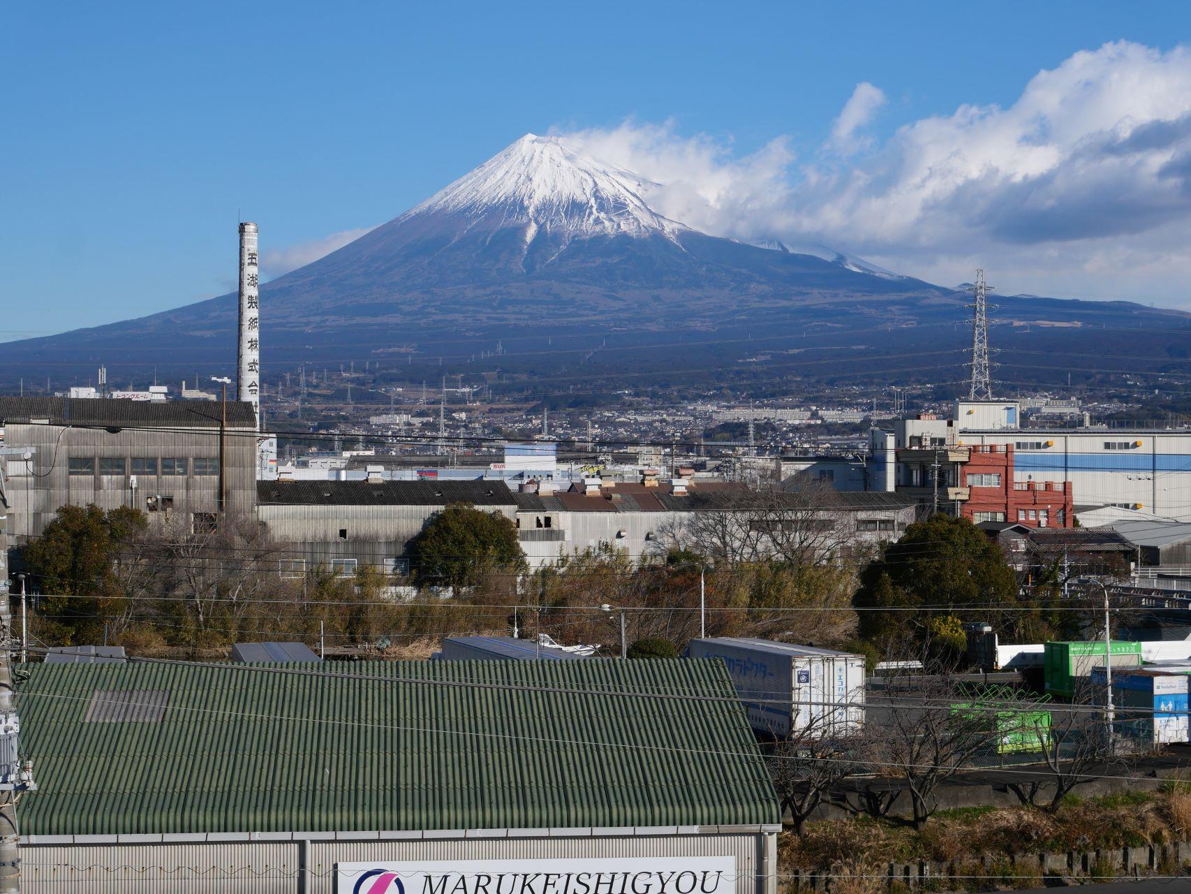 富士山 › 東海道線、吉原駅前「津波避難タワー」から富士山