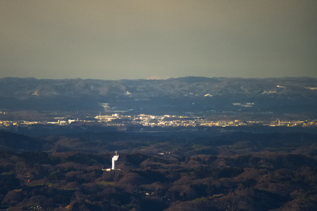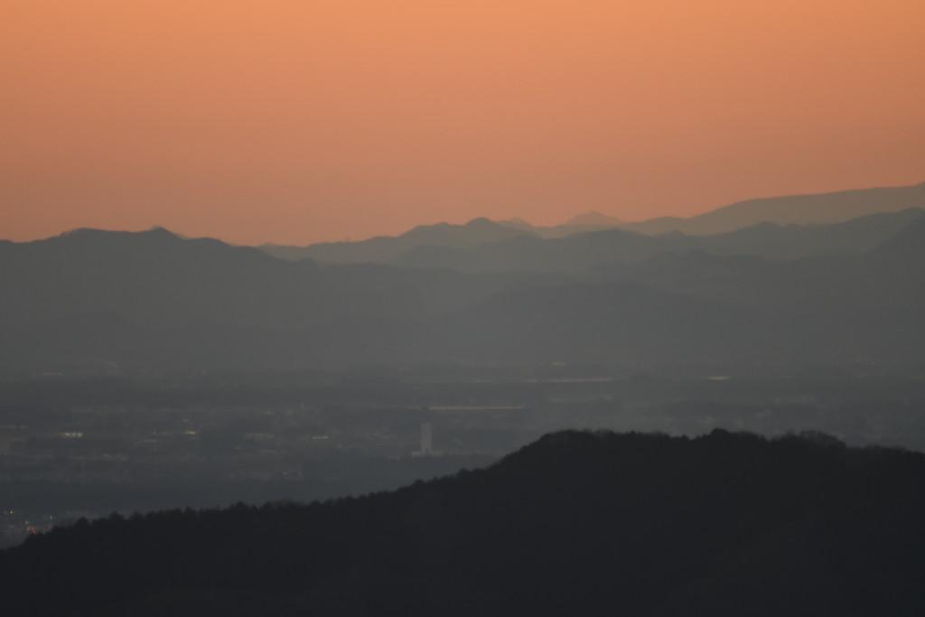 日没直後は230km離れた穂高岳が見えていました(薄く見えている山)。