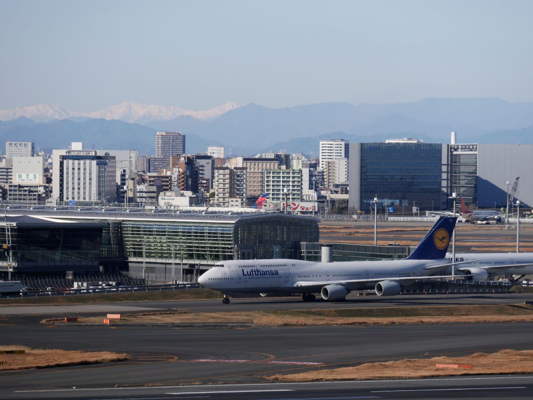 ルフトハンザ航空の747(ジャンボジェット機)と南アルプス。羽田や成田では以前はどっちを見てもジャンボ機だらけだったんですが、近年はめったに見かけなくなりました。